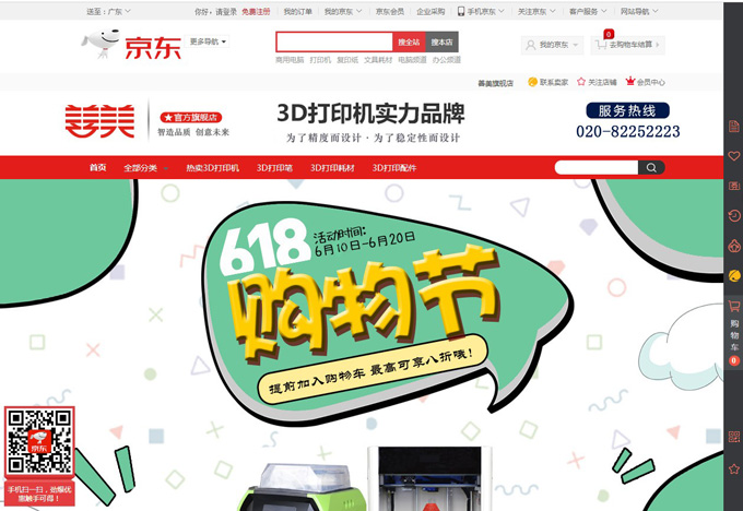 2018年6月10日,3D打印善美旗艦店正式上線京東開業(yè),這標(biāo)志著我司將向3D打印行業(yè)服務(wù)市場又邁出堅實(shí)的一步。